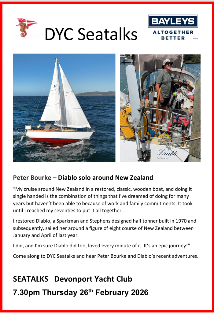 DYC Seatalks cover a range of nautical subjects and they are FREE! All members and their guests are welcome — please sign your visitors in at the desk. Usually held on a Thursday night, these are social occasions, the talk starts at 7:30pm.