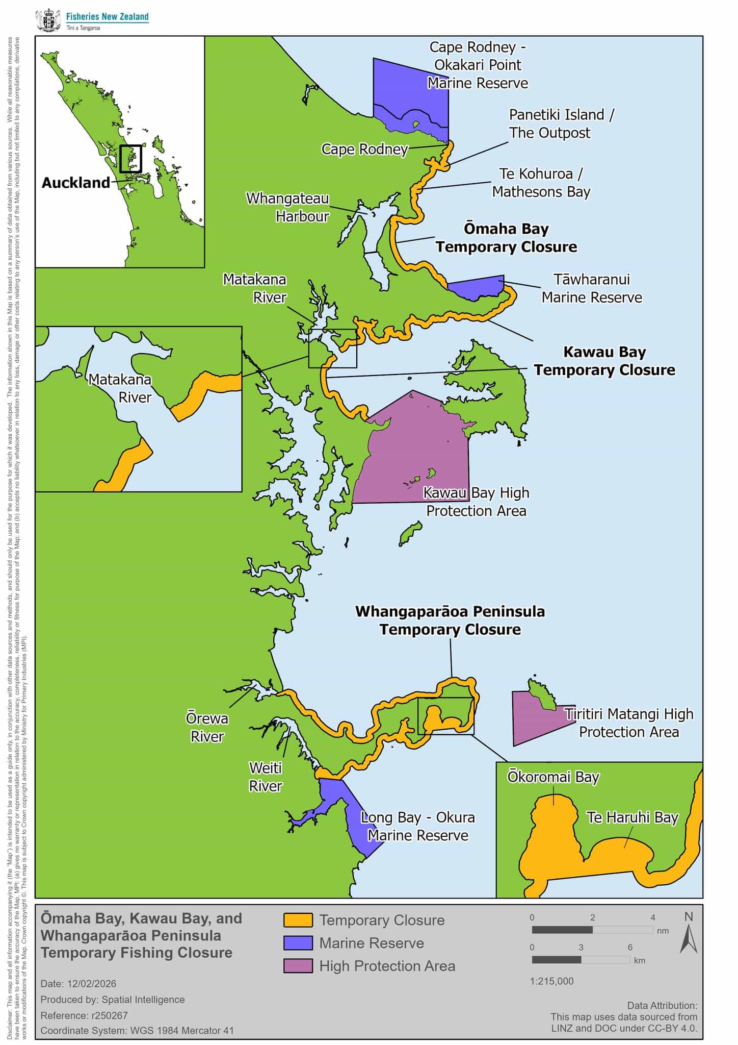 The map above and text below come from a MInistry of Primary Industrries Facebook post 15/02/2026